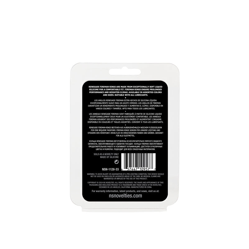 Renegade Fireman Rings are made from exceptionally soft liquid silicone for a comfortable fit. Fireman rings ensure prolonged performance and heighten climax. Available in assorted colours and sizes. Suitable with all lubricants.