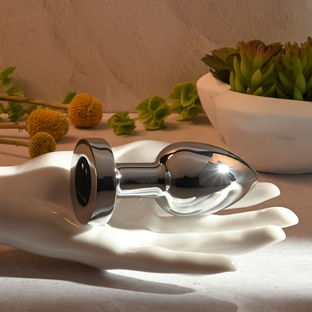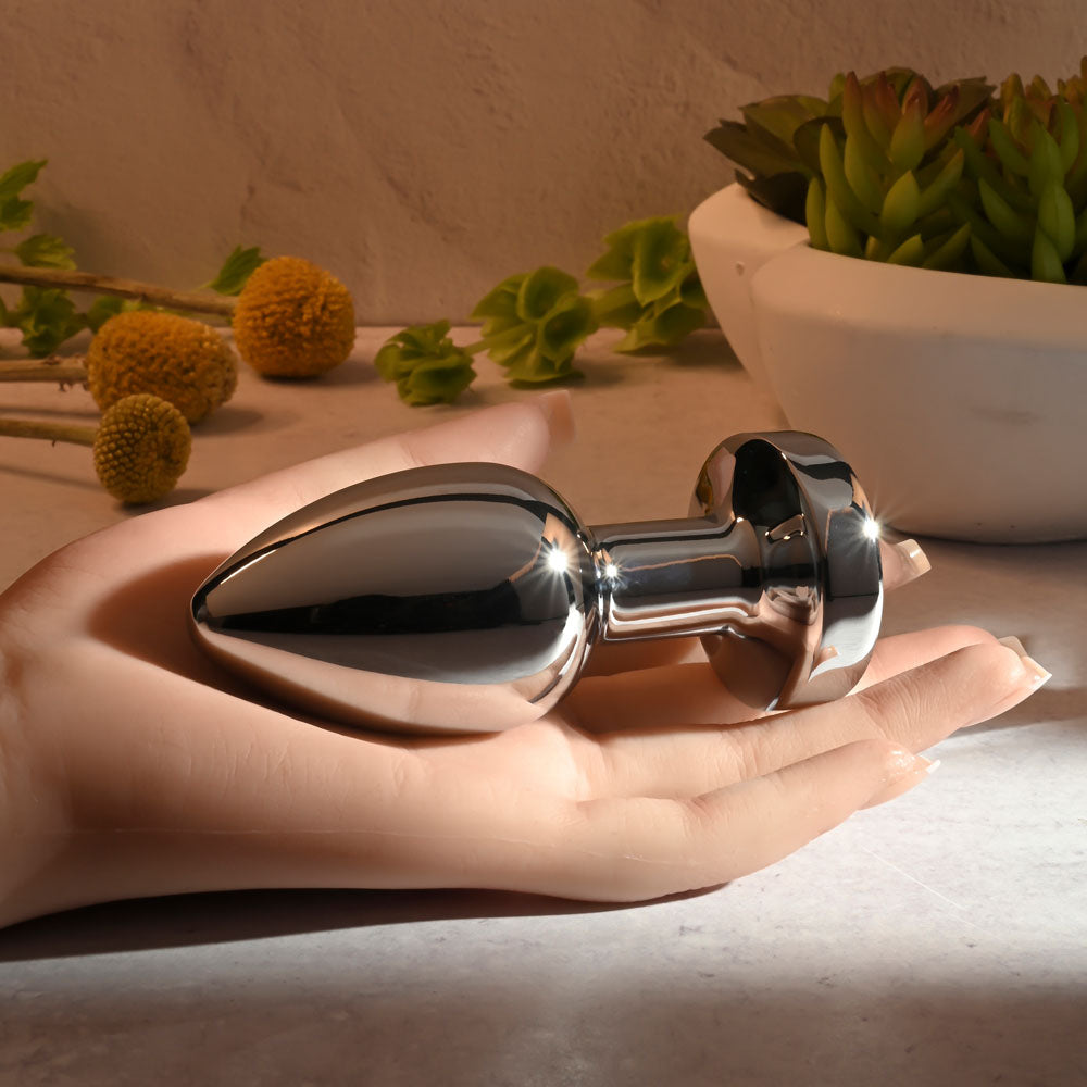 Rev up your body with this sleek metal plug designed for everybody! Tapered to an elegant tip, it buzzes and pulses in seven delicious speeds and functions for your customised pleasure. The lustrous nonporous surface slides on skin beautifully and lets you explore erogenous zones in whatever way you choose! Try immersing the plug in warm or cool water beforehand for fun sensation play. After all, it’s completely submersible - and rechargeable too.