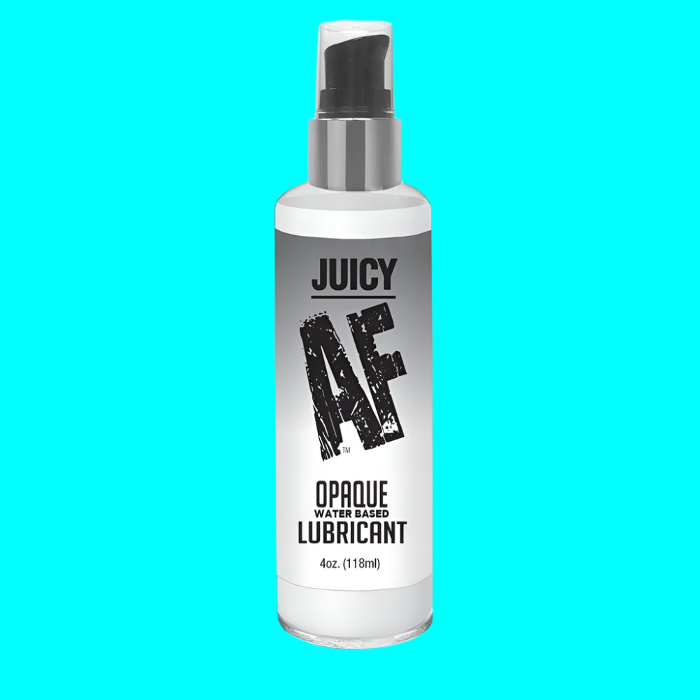 Juicy AF water-based lubricant has a thin and realistic texture and colour, designed to absorb into the skin during use and simulate the look and feel of natural semen. Safe to ingest, safe to use with sex toys, and safe to pair with condoms, Juicy AF water-based lubricants are the best option for universal styles of play. Juicy AF water-based lubricant comes in 59 and 118 ml bottles with a modern teardrop pump. Juicy AF is made in the USA.
